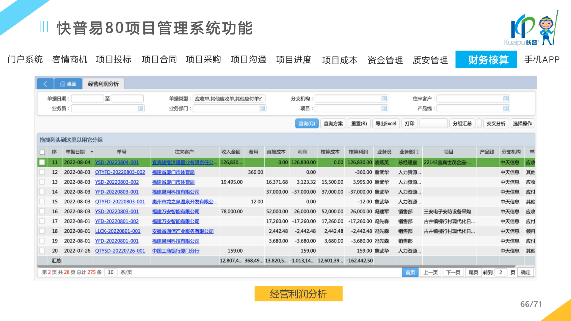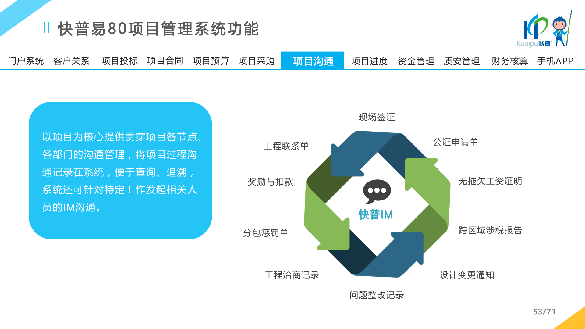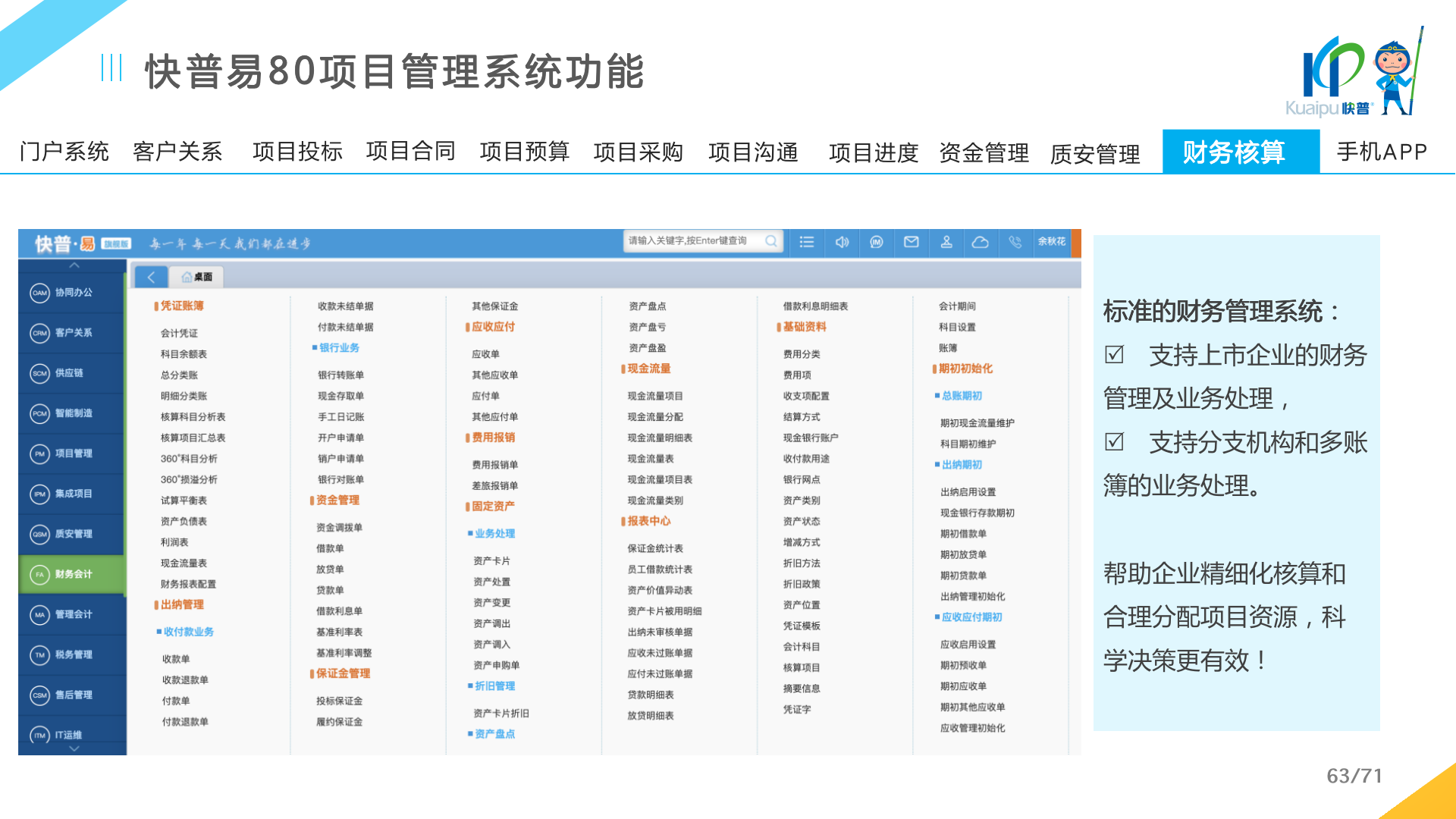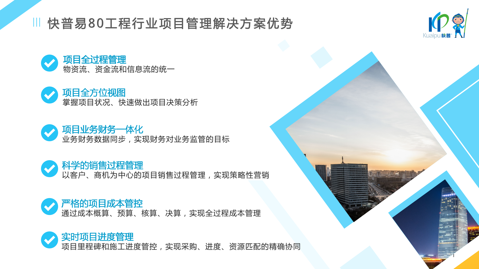 快普易80以項目管理為核心,通過“四控、四管、一協(xié)調(diào)”方式,對項目進(jìn)度、成本、資金、質(zhì)量安全進(jìn)行全面控制,實現(xiàn)投標(biāo)管理、合同管理、物資管理、預(yù)算管理等項目全生命周期項目的數(shù)字化管理,實現(xiàn)資源合理配置、保障良好的項目效益。