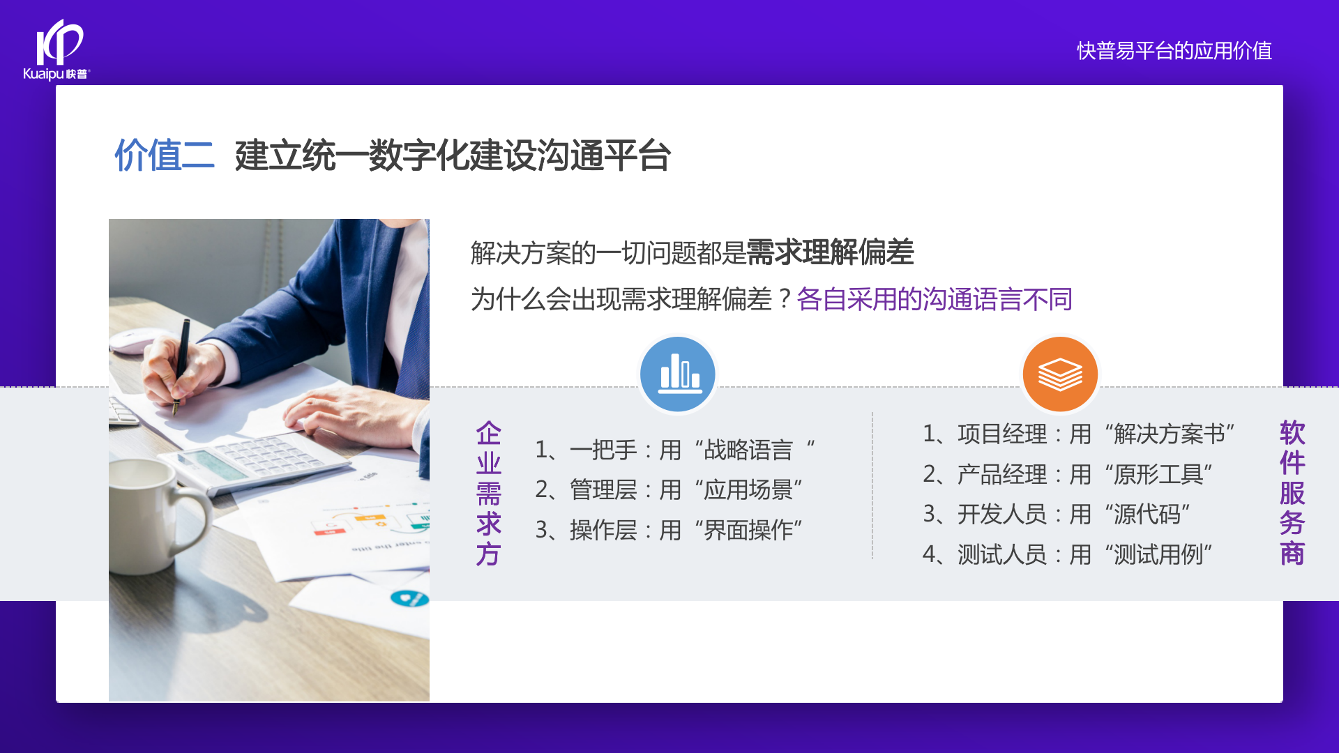 為了解決市場(chǎng)需求與平臺(tái)產(chǎn)品瓶頸等矛盾,實(shí)現(xiàn)徹底的零代碼平臺(tái),快普?qǐng)?jiān)持理念創(chuàng)新,以理念推動(dòng)平臺(tái)技術(shù)的創(chuàng)新?!耙圆蛔儜?yīng)萬(wàn)變”的理念:分析哪些東西未來(lái)肯定不變?哪些趨勢(shì)未來(lái)一定會(huì)變?從變化中找出不變的因素,從不變中找出變動(dòng)的因素;從量變到質(zhì)變,經(jīng)歷萬(wàn)變總結(jié)抽象出不變的本質(zhì)。基于快普長(zhǎng)期的信息化服務(wù)經(jīng)驗(yàn),開發(fā)配置出企業(yè)數(shù)字化轉(zhuǎn)型工具:快普易平臺(tái)成功解決了企業(yè)數(shù)字化轉(zhuǎn)型升級(jí)面臨的客戶大量個(gè)性化需求,真正實(shí)現(xiàn)隨需而變的設(shè)計(jì)理念,大大降低了信息化投入成本,提高信息化效率,幫助企業(yè)實(shí)現(xiàn)自主可控的技術(shù)創(chuàng)新,從而進(jìn)一步推動(dòng)企業(yè)的業(yè)務(wù)創(chuàng)新和管理創(chuàng)新。
