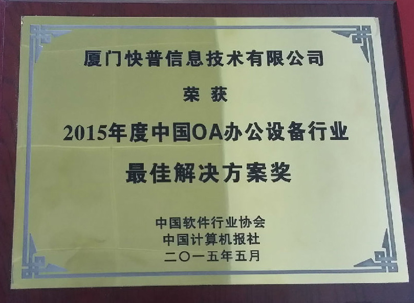 近日,第十九屆中國軟件博覽會在北京展覽館隆重舉行,工業(yè)和信息化部部長苗圩出席并講話,由工業(yè)和信息化部副部長懷進鵬主持開幕式。廈門快普作為中國整合管理的倡導者和領導者連續(xù)四年受邀參加軟博會,憑借多年在工程項目領域及OA辦公設備行業(yè)精耕細作,在本屆大會上同時榮獲兩項大獎:“2015年度中國工程項目行業(yè)突出貢獻獎”和“2015年度中國OA辦公設備行業(yè)最佳解決方案獎”!