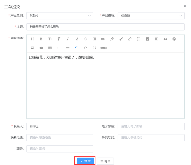 點(diǎn)擊“提交工單”,描述您的具體問題。圖文形式,問題描述更直觀、更清晰。