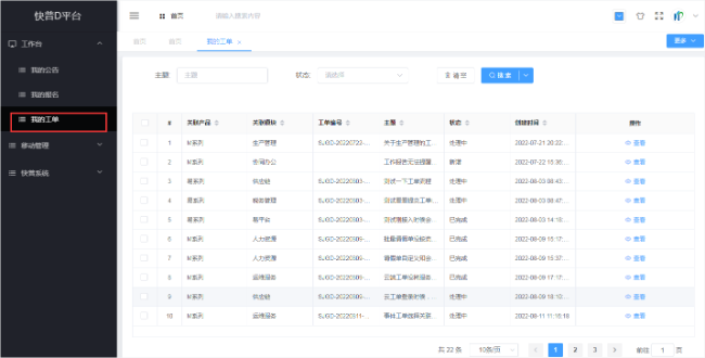 方法二、 通過自助平臺(tái)→工作臺(tái)→我的工單,查看所有工單記錄