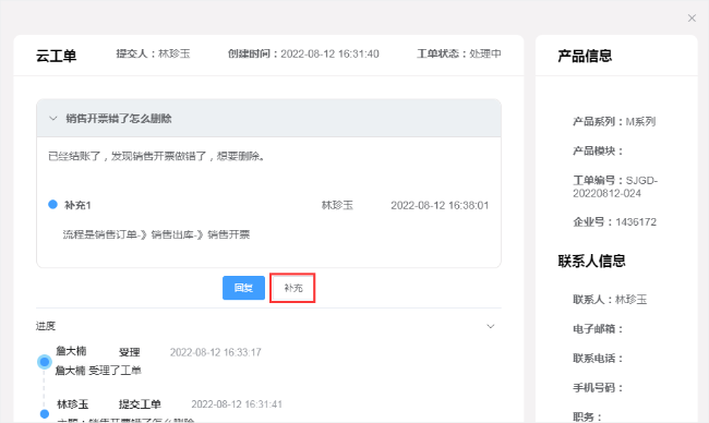 針對(duì)受理中的工單,您還可以進(jìn)行問題補(bǔ)充。