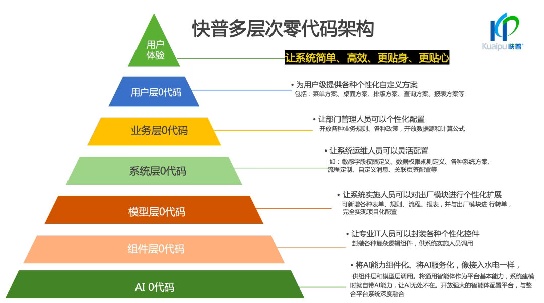 針對(duì)這一核心問(wèn)題,溫董詳細(xì)闡釋了快普獨(dú)創(chuàng)的 “多層次零代碼架構(gòu)” 如何助力企業(yè)實(shí)現(xiàn)“小快輕準(zhǔn)”轉(zhuǎn)型: