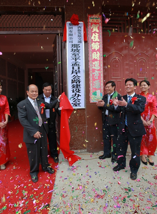 為貫徹落實自治區(qū)黨委、政府在全區(qū)掀起項目建設(shè)新高潮的決策部署,沖刺第四季度,完成全年公路建設(shè)目標(biāo)任務(wù),自治區(qū)交通運(yùn)輸廳于11月3日舉行全區(qū)公路路網(wǎng)改造項目集中開工儀式。由集團(tuán)公司承辦的分會場——那坡至平孟口岸公路等16個公路路網(wǎng)項目暨5670公里農(nóng)村公路集中開工儀式在百色市那坡縣德隆鄉(xiāng)隆重舉行。自治區(qū)交通運(yùn)輸廳紀(jì)檢組長、廳黨組成員朱名勝,百色市市委常委、政法委書記周武紅,市人大常委會黨組成員黃五同,集團(tuán)公司黨委書記、董事長朱堅和、總經(jīng)理李定倫、黨委副書記張友坐、副總經(jīng)理劉明洪、總工程師覃炳賢,自治區(qū)公路管理局、百色市公路管理局、交通運(yùn)輸局、那坡縣四家班子、集團(tuán)公司直屬各單位領(lǐng)導(dǎo)及有關(guān)部門負(fù)責(zé)人等出席開工儀式。